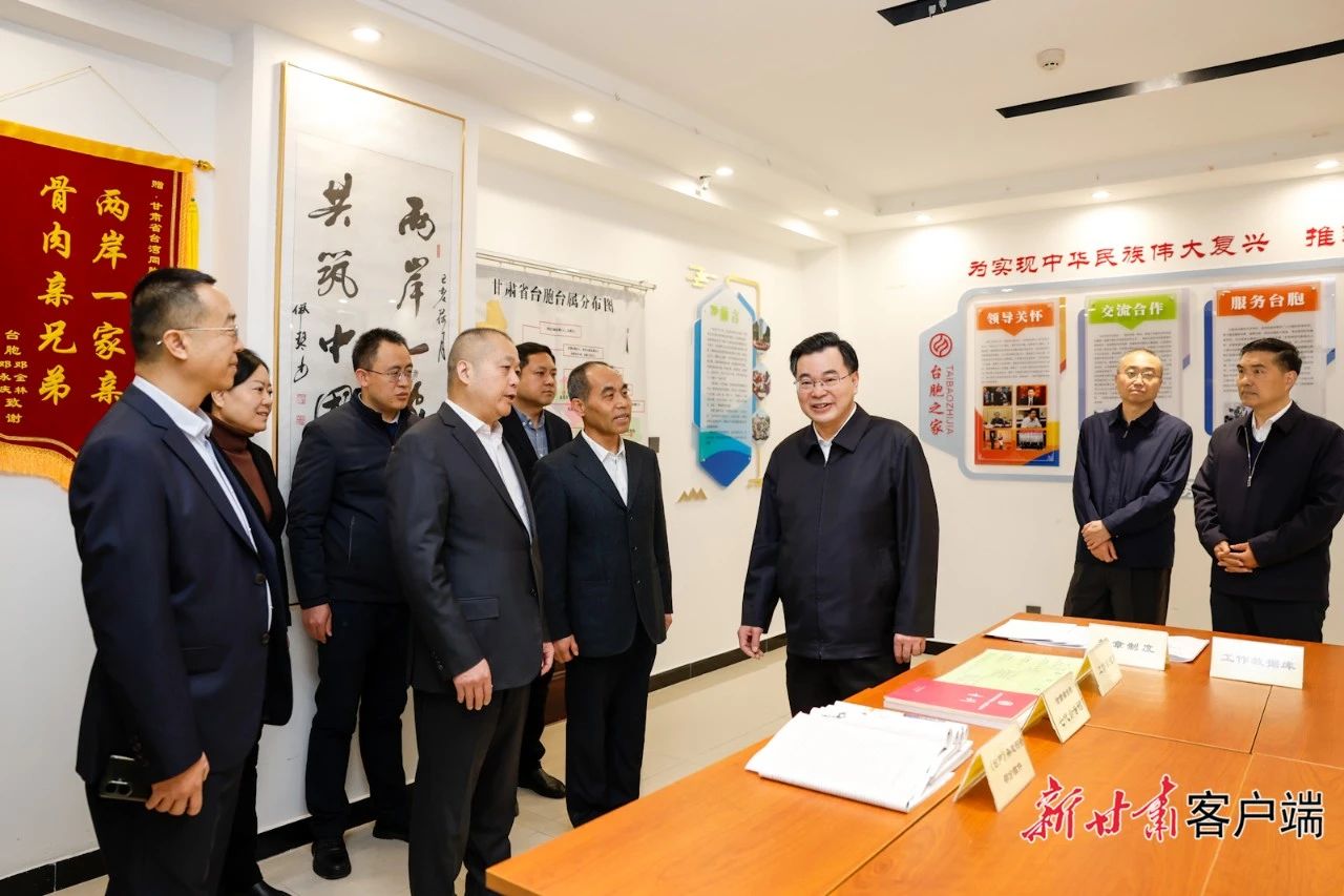 11月25日,省委书记、省人大常委会主任胡昌升在省委统战部、省委台办、省台联、省黄埔军校同学会调研。新甘肃·甘肃日报记者 孟捷省委书记、省人大常委会主任胡昌升11月25日在省委统战部、省委台办、省台联、省黄埔军校同学会调研时强调,要坚持以习近平新时代中国特色社会主义思想为指导,深入学习贯彻党的二十大精神和习近平总书记关于做好新时代党的统一战线工作的重要思想,坚持和完善大统战工作格局,创新谋实载体抓手,着力抓实思想政治引领、聚力改革发展、防范风险隐患等重点工作,推动统战工作更好为全省现代化建设撑劲使力、凝聚人心、汇聚力量。