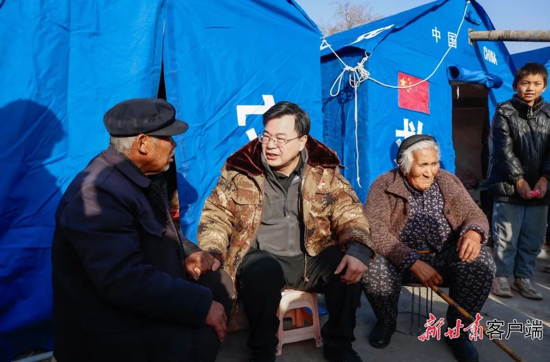胡昌升先后来到吹麻滩镇方家村、中庄村,柳沟乡尕集村、马家村,刘集乡团结村、陶家村,大河家镇四堡子村、周家村、韩陕家村、大墩村、甘河滩村等安置点,实地察看受灾群众安置、物资管理分配、御寒保暖等情况。在尕集村安置点,胡昌升走进帐篷,与受灾群众亲切交谈。当得知受灾群众安成才花的儿子儿媳在西藏打工无法回来时,胡昌升现场用手机视频连线,告诉他们家里老人和孩子已经住进了温暖的帐篷,生活得到了保障,请他们在外安心务工。他说,地震发生后,习近平总书记和党中央、国务院十分关心,全国各地紧急驰援,全省上下全力以赴妥善安置受灾群众,倾情倾力解决实际困难,相信大家齐心协力,一定能够渡过难关、重建美好家园。