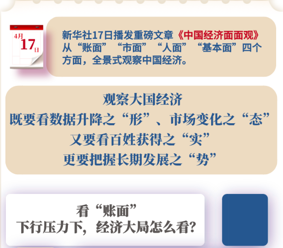 针对各方关切的热点问题,新华社记者多方调研采访,从“账面”“市面”“人面”“基本面”四个方面,全景式观察中国经济。