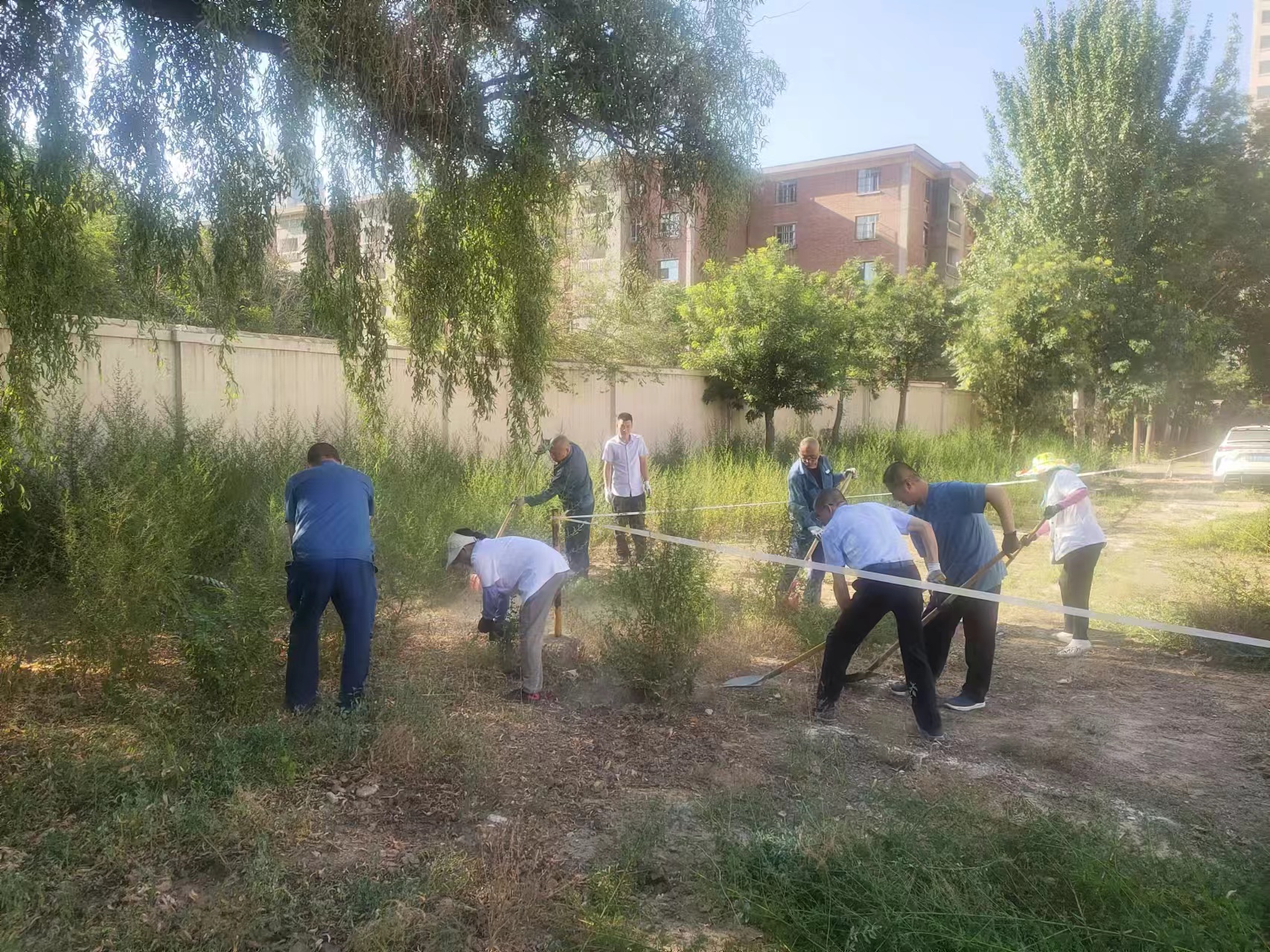 7月31日,为进一步加强院区环境卫生治理,后勤服务中心组织开展“清除杂草 美化院区”活动。活动中,大家分工协作,挥锨用锄、手拔铲剪,对院区空地杂草和边沟里的垃圾进行“无死角式”清理。经过大家的共同努力,原本杂草丛生的角落变得干净整洁。